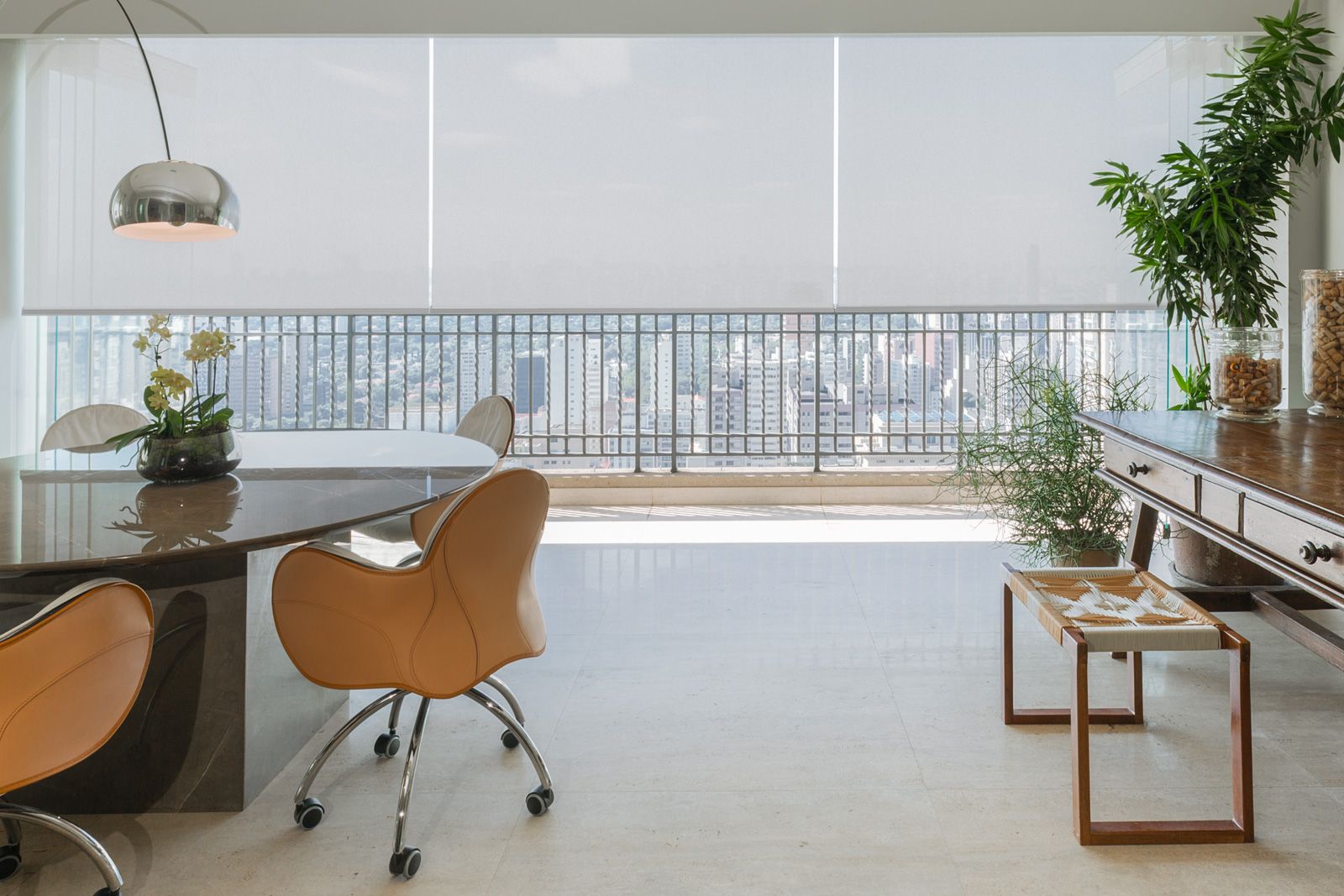 Com tecido de alta tecnologia e design pensado para áreas amplas e envidraçadas, a Balcony reduz significativamente a entrada de calor, sem bloquear a luminosidade natural. Disponível em 3 cores e com níveis de abertura de 1% ou 3%, ela se adapta à necessidade de cada projeto, mantendo a transparência na medida certa para criar atmosferas leves, abertas e conectadas.