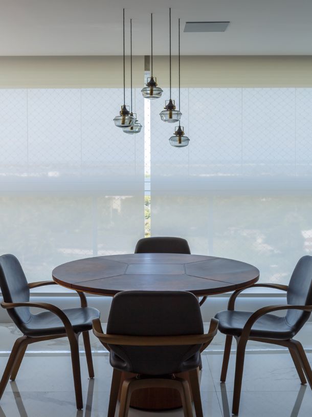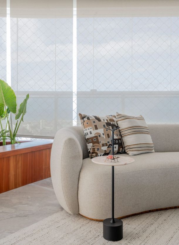 Com estrutura minimalista e acabamento impecável, a Rolô é formada por um tubo de alumínio e tecidos de alta performance, que se desenrolam de forma contínua e silenciosa. Está disponível em tecidos decorativos, telas solares ou versões blackout, atendendo diferentes intensidades de luminosidade e estilos de projeto.