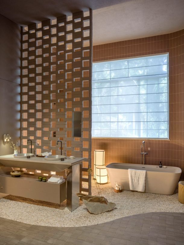Design marcante, com varetas flutuantes e dobras que realçam o desenho das janelas