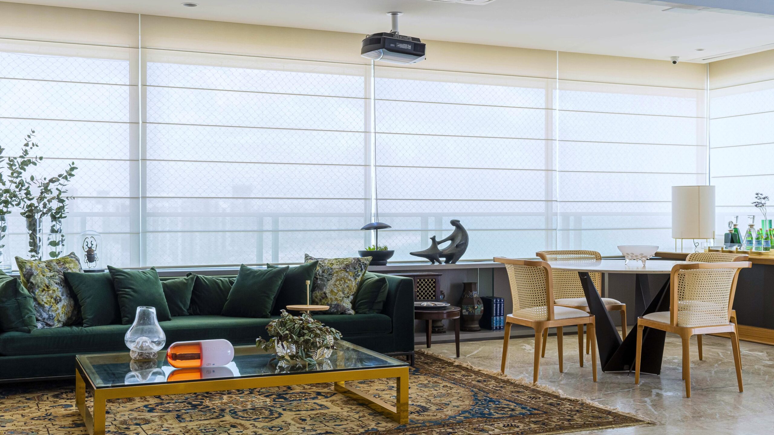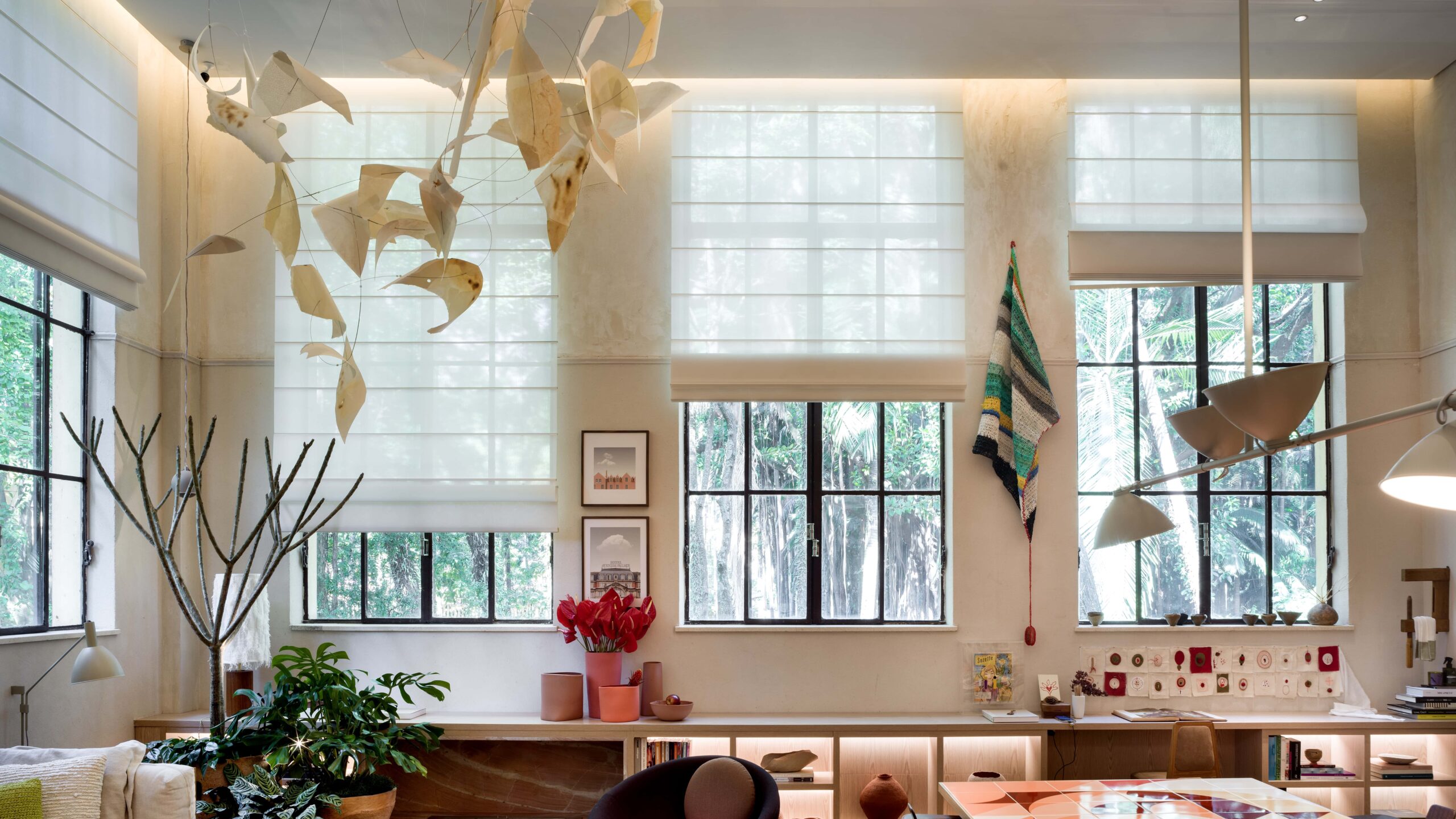 Versátil, a Romana pode ser acionada manualmente, com sistema monocontrole, motorizada ou até por celular, graças à integração com o sistema Uniflex Connect. Compatível com tecidos decorativos, técnicos ou blackout, a cortina se transforma para atender diferentes objetivos: controlar a luz, compor a decoração ou garantir total escurecimento.