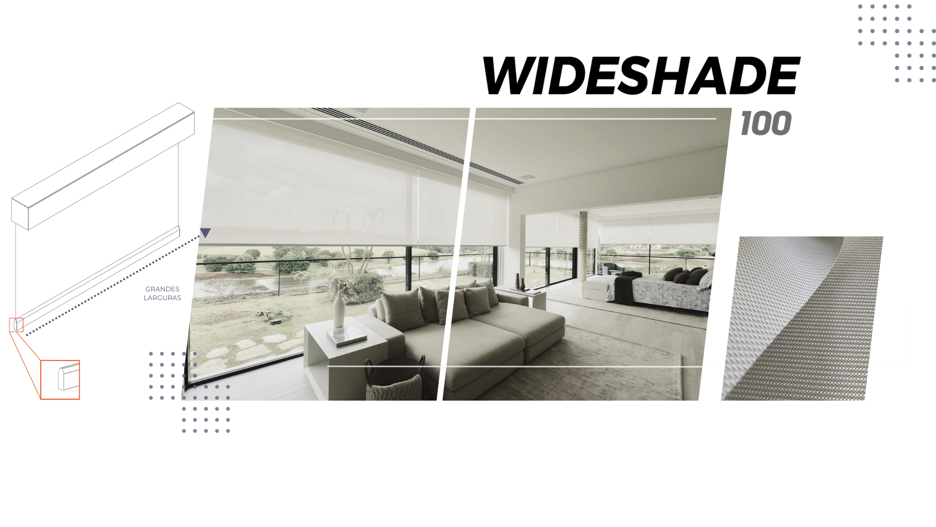 Com um design elegante e funcional, o WIDESHADE 100 é um produto com a capacidade de se adequar às dimensões ideais de cada projeto, permitindo aplicações em grandes larguras com a utilização de uma única peça. Com isso, você tem mais liberdade na hora de criar ambientes únicos, sem se preocupar com a qualidade do produto.