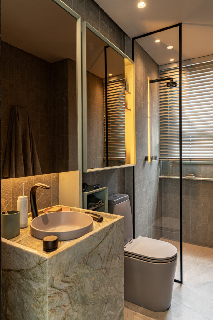Persianas Faux Wood no Banheiro da Suíte