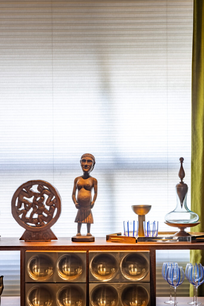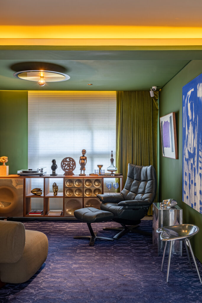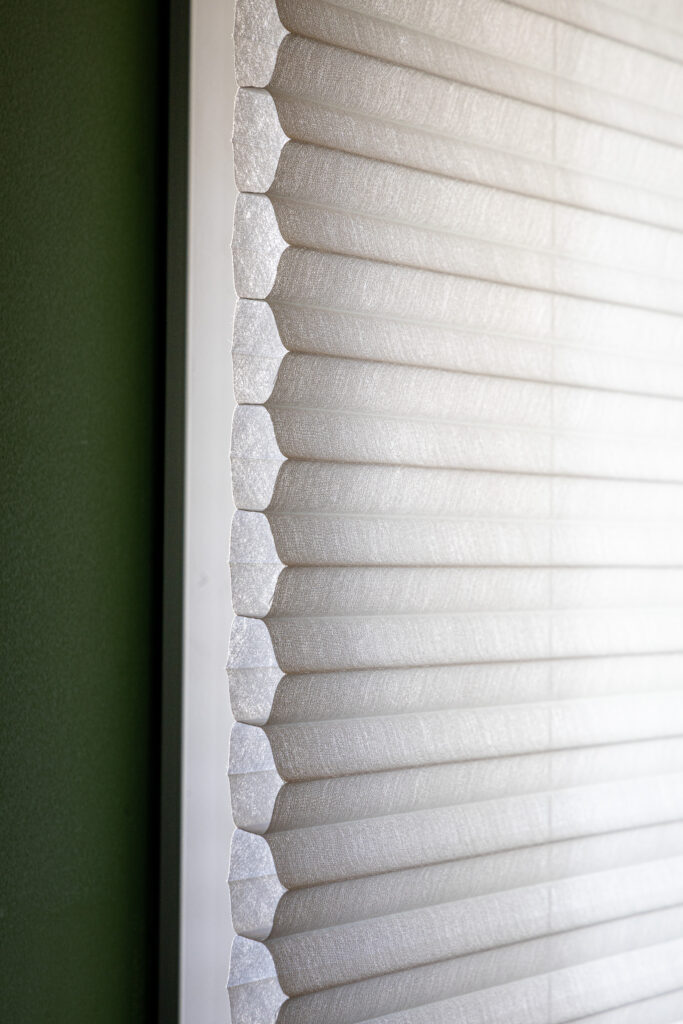 Na Sala de Música, o protagonismo foi da Cortina Celular Uniflex, um produto que combina eficiência térmica e acústica com estética leve e minimalista. Sua estrutura plissada forma pequenas câmaras de ar, atuando como isolantes naturais que equilibram temperatura e reduzem ruídos.