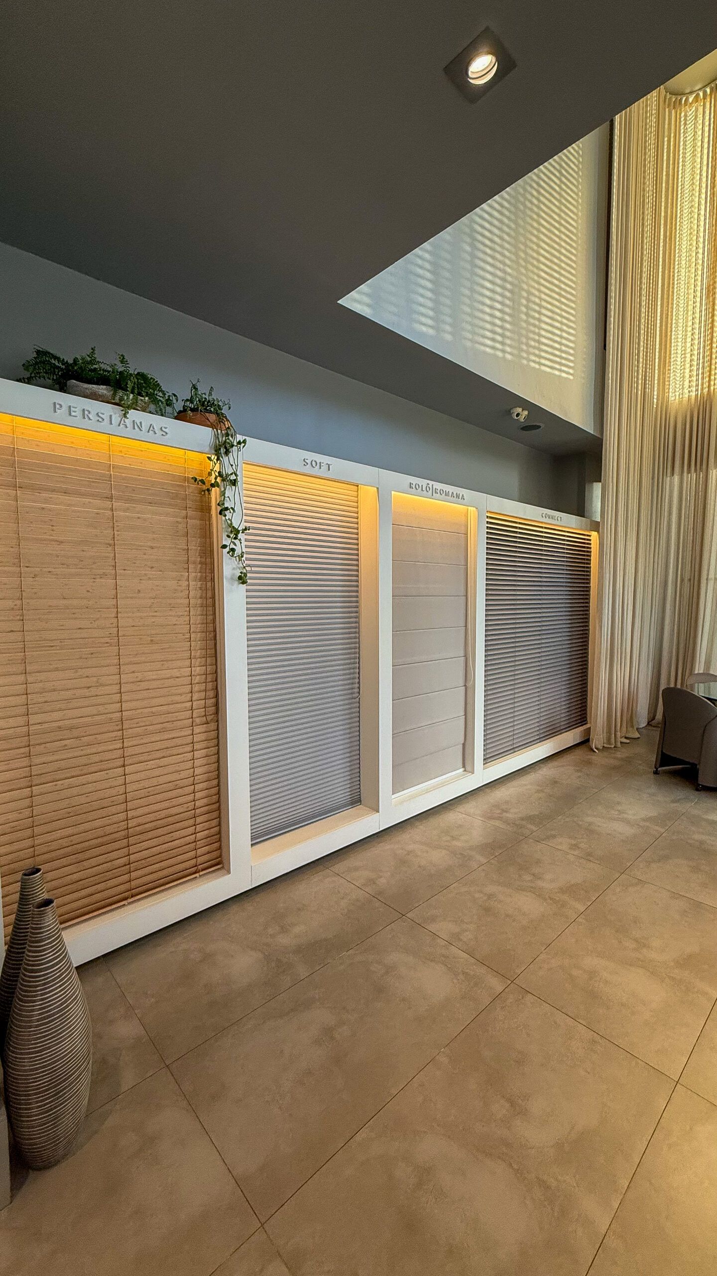 Os espaços vistos através das cortinas Uniflex, suas texturas, tecidos, cores e estética nos aproxima do mundo externo de maneira sensorial reforçando a materialidade, tatilidade e textura dela no espaço construído.